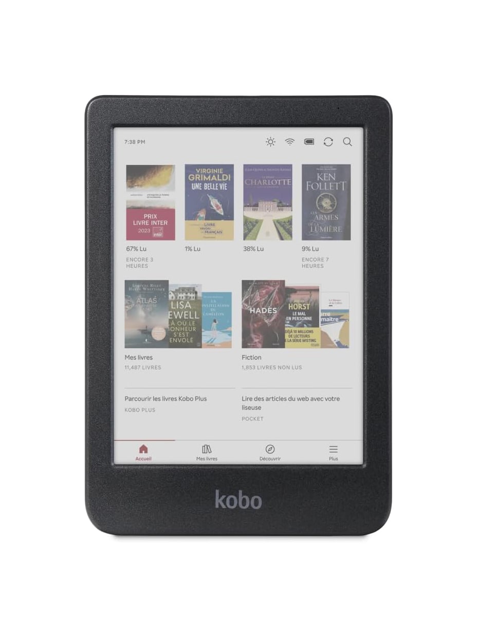 - - Formats pris en charge : EPUB, EPUB3, CBZ, CBR, PDF, MOBI, JPEG, GIF, PNG, BMP, TIFF, TXT, HTML, RTF, Livres audio Kobo