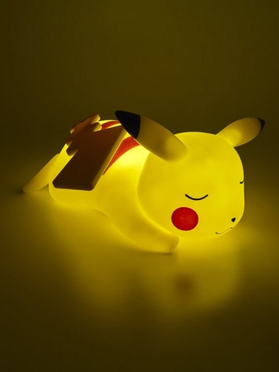 C’est Pikachu qui fait dodo. Il a les yeux fermés et il tire un peu la langue, on dirait qu’il rêve. Il est tout doux à regarder et trop mignon. On dirait qu’il fait une sieste. Et en plus, quand on l’allume, ça fait une petite lumière comme une lampe pour la nuit.